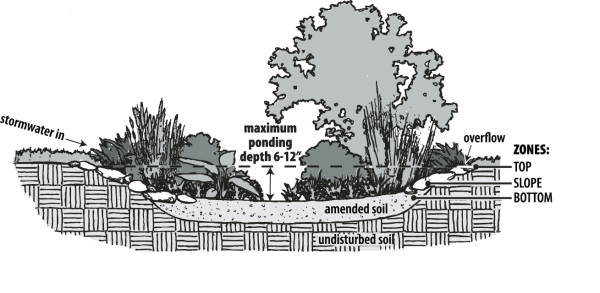 It features three distinct. Its objective is to collect stormwater that runs off your lawn driveway and roof when it rains or snows. Rain gardens with no underdrain allow allow captured runoff water to infiltrate into the underlying soil.